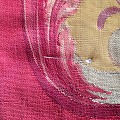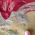 パリで見つけたオービュッソン作品です。 (オービュッソン織りはユネスコの世界遺産登録されています。) おそらく椅子の背面の張り替え用に織られた物。 ずっと出会いを求めていたオービュッソン。 シャトーの壁面を飾るアンティークタペストリーはそれはそれは見事でしたが、とても手が出せるお値段ではありませんでした。 日本では綴れ織りと呼ばれるそうですし、トルコのキリムやスウェーデンのフレミッシュ織りと似た手法です。 私はまずキリムやフレミッシュと出会ってその見事な技術に感動しましたが、オービュッソンをはじめて間近に見た時にはただただ驚愕でした。 シャトーオークションで壁面を飾るタペストリーの豊かな色彩と細かい糸替えによる絵画のような表情は息をのむほどでした。 それ以来、タペストリーは無理でもオービュッソン作品を手にしたいと願い続けていました。 でもなかなか出会いの機会はなかったです。 今回パリに行ってこの作品に出合いました。 1900年頃に作られた物です。 その目をみはる細かな糸の芸術。 花のラインをご覧ください。 いったいどうやってこの表情が出せるのでしょう。 細くゆったり曲がった植物の茎など全て糸を変えて織りで表現しているのです。 歪みがなくこの細かな織りを仕上げるのにどれほどの熟練が必要だったのでしょうか。 額装したり縁を付けてタペストリーとしてお楽しみください。 世界遺産登録をされたこの手織り手法、少しずつでも今後もご紹介できればと思っています。 語ると長くなりすぎるので今回はこのくらいで・・・。 麻糸にウールの色糸を織り込んで作られています。 ブレイクもなくとても良い状態です。 ごく小さなグレーのスポットがありますが、目立つものではありません。 アンティークとしては非常に良い状態です。 size 59cmX71p |