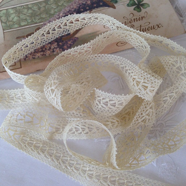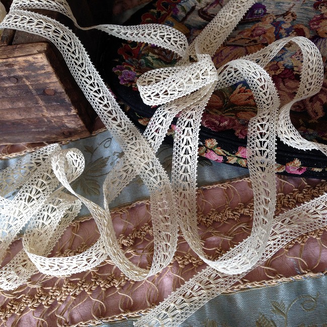 フランスのマーケットで見つけたアンティークトーションレーストリムです。